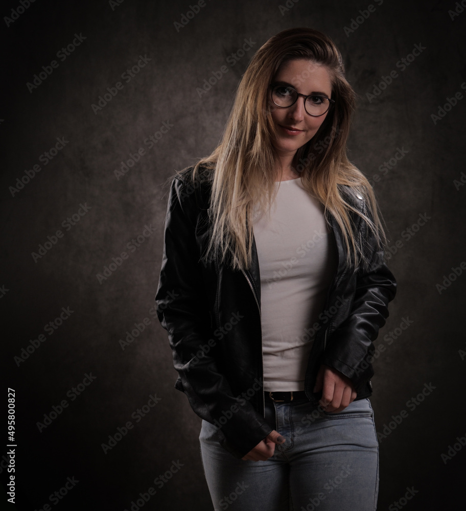 Close-up shot of a blonde beautiful woman in a studio - studio photography