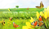 Spring and summer panorama with word spring.