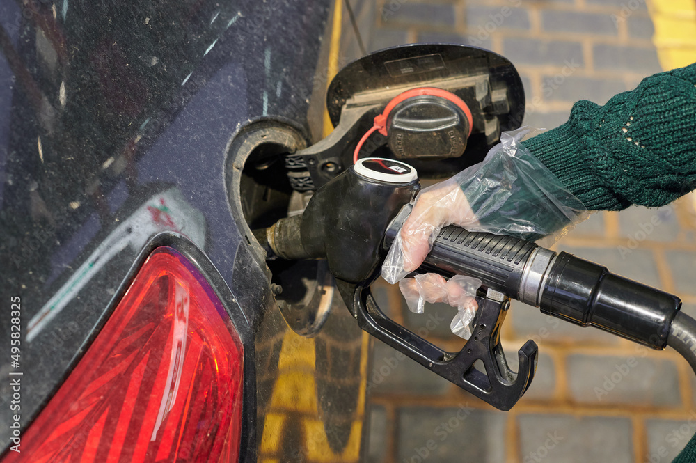 Fuel hose for refuel at a gas station. Gasoline and diesel prices rise.