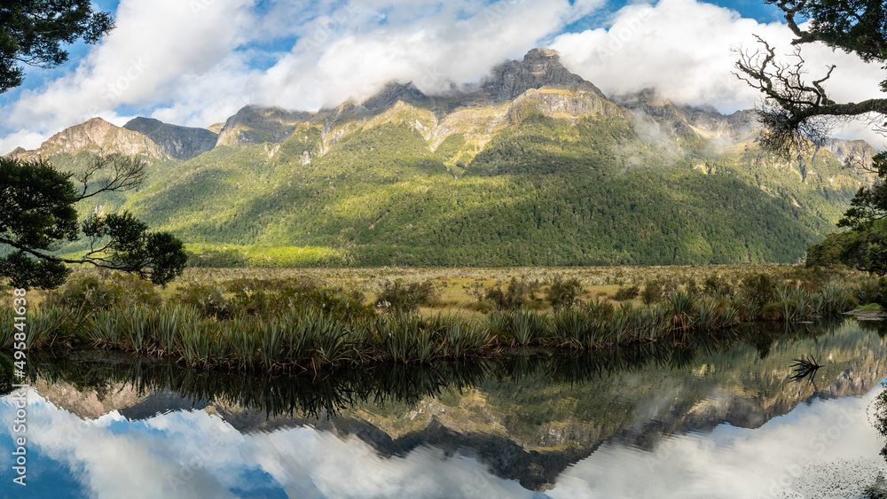Reflection in Mirror Lakes Fiordland National Park New Zealand in Summer
