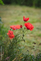Beautiful flower shot with a blurred background. Red poppies in green scenery. Photo in shallow depth of field.