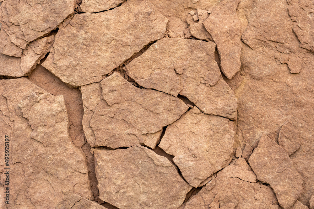 Sandstone with traces of plant fossils. Relic of ancient plants on sandstone slabs
