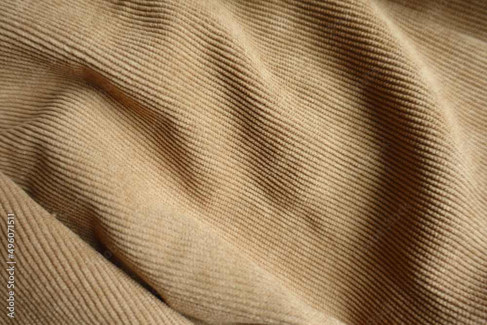 Texture of draped light brown corduroy fabric