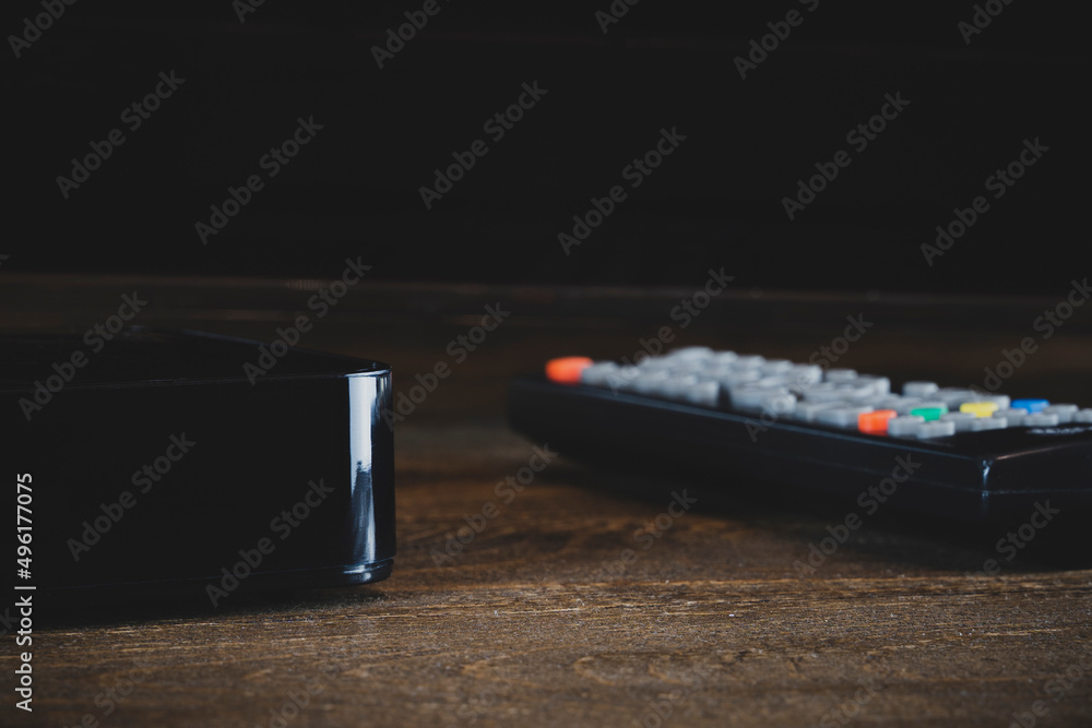 TV set-top box on a wooden background