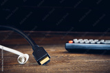 TV set-top box on a wooden background