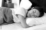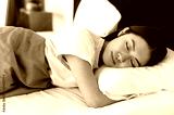 Sweet dreams. Pretty chinese woman in white t-shirt under the blanket in bed in the morning. Side view of a sleeping asian girl in a cozy bed in apartment, pleasant dreams, healthy sleep
