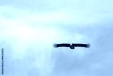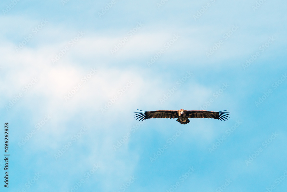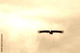 Silhouette Steppe eagle flying in blue sky