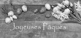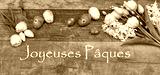 Décoration de Pâques avec le texte Joyeuses Pâques sur le vieux bois.