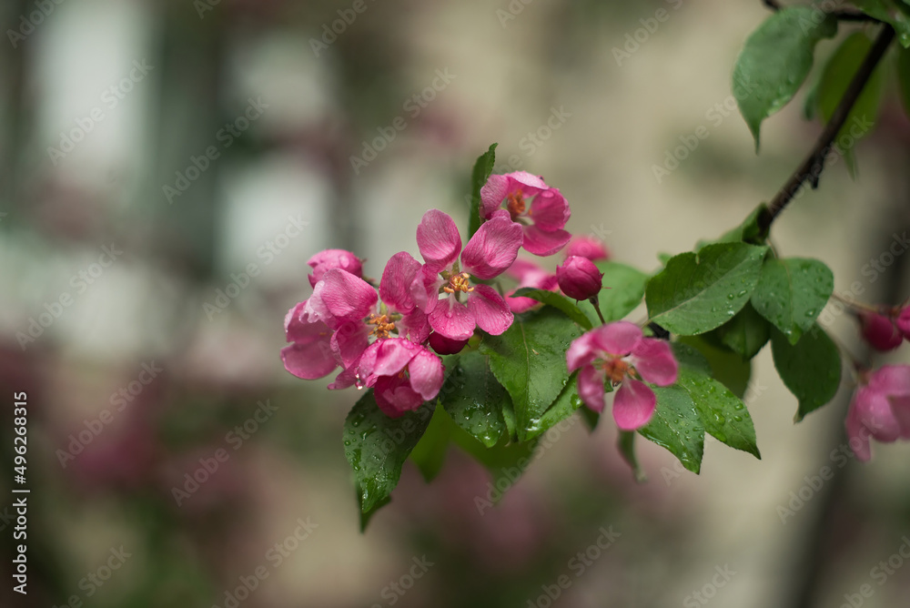 Cherry apple tree blossom. Pink flowers. Soft focus
