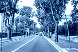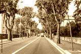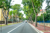 Narrow Straight Highway Road with Vehicles Crossing the a Beautiful Peaceful Town in Croatia.