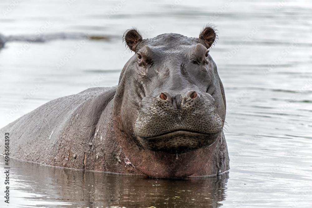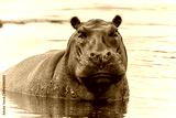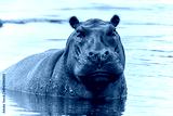 Hippopotamus in the Okavanga Delta in Botswana. An aggressive hippo bull shows dominant behaviour.
