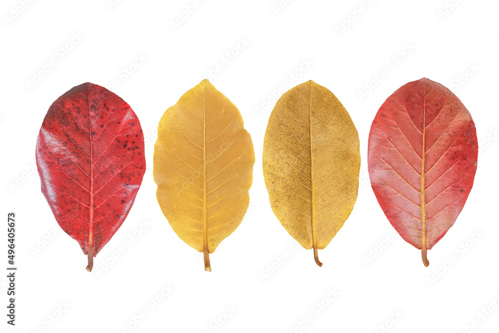 Red and Yellow Leaf of Tropical almond isolated on white with clipping path