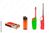 Matchbox and Lighters , Gas lighter gun for gas-stove isolated on white background with clipping path included
