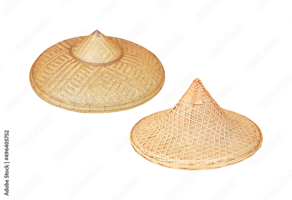 Bamboo hat two style Isolate on white background ,clipping path included for design.