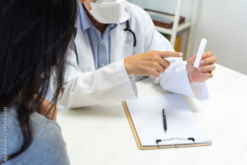 doctor show the negative test result (ATK) of corona virus to young patient in hospital.