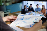 asisn woman video conference busienss meeting with colleage online with laptop at home