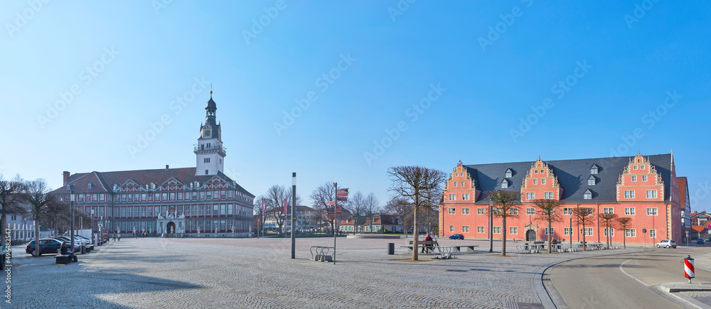 Schlossplatz von Wolfenbüttel mit Schloss und Zeughaus, in Norddeutschland, Niedersachsen,