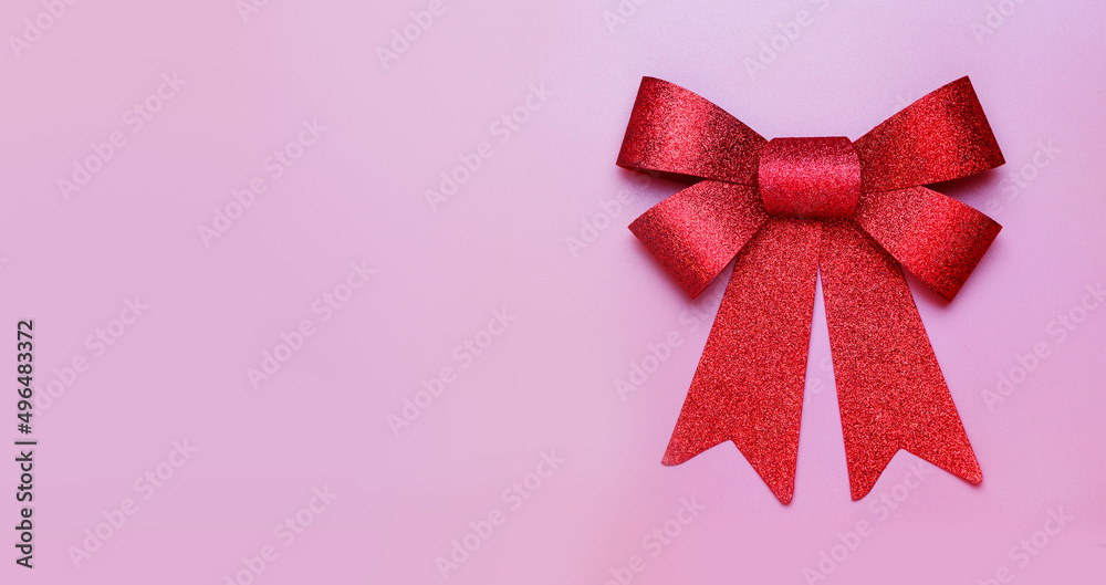 A shiny red bow on a pastel serenity background.