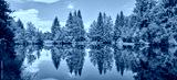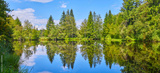 See-Panorama mit schöner Spiegelung, in Oberbayern, Deutschland.