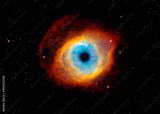 The manipulated photo of Helix Nebula or NGC 7293. Helix nebula has sometimes been referred to as the "Eye of God" in pop culture. Image courtesy of ESA-Hubble