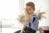 Sad little child, hurt, sitting at home, crying