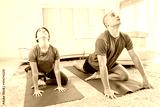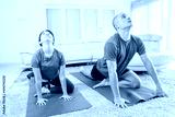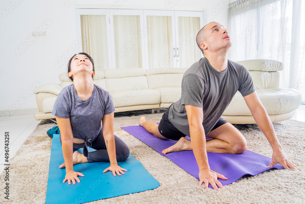 Young couple doing yoga exercise at home