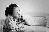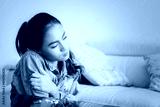 Drugs addict girl shivering near the drugs