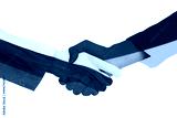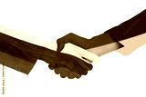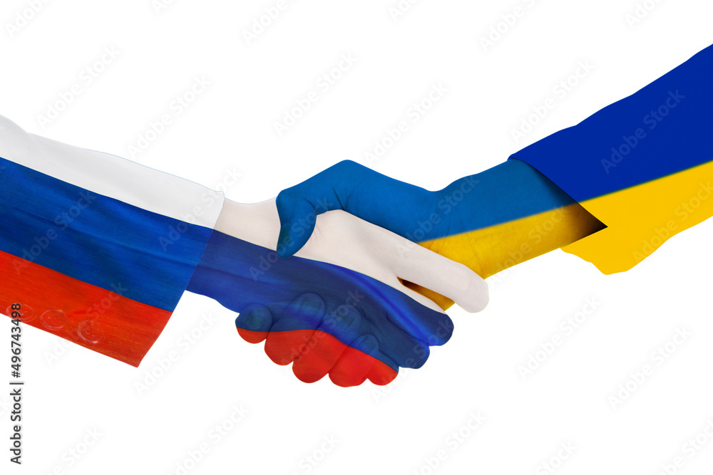 Handshake each other with Ukraine and Russia flag