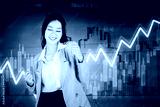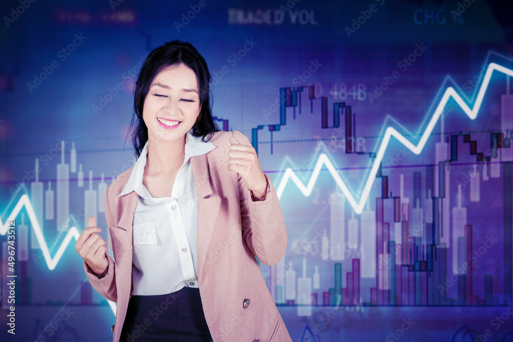 Happy businesswoman dancing near growth chart