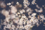 Beautiful spring nature background. Blossoming apricot tree, retro toned image