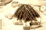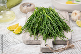 Cooking Fresh Agretti or barba dei frati, edible green plant. Saltwort, barilla plant or salsola soda.