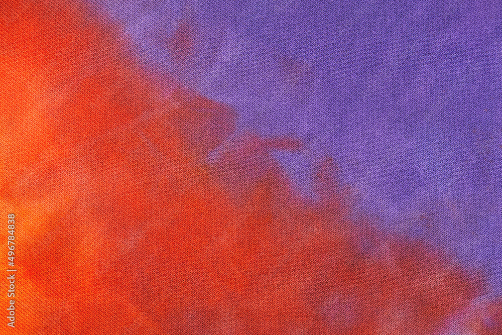 Abstract tie dye multicolor fabric cloth Boho pattern texture for background or groovy wedding card, sale flyer, 60s, 70s poster, kid tie-dye diy backdrop. Modern Watercolor Wet Brush Fabrics Art