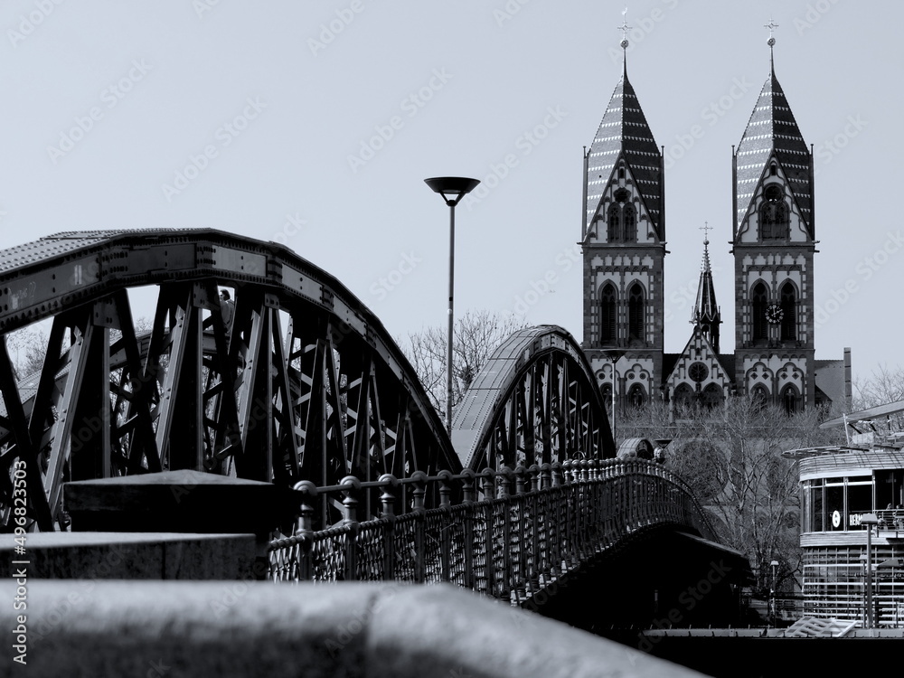Wiwili Brücke mit Herz-Jesu-Kirche in Freiburg