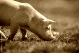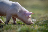 Newborn piglet on spring grass on a farm