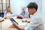 Asian businessman using digital tablet in the office