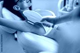 Armpit hair photo epilation procedure with ipl machine in a beauty salon. Cosmetology