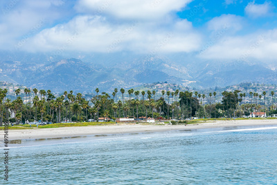 Santa Barbara, California. USA. Tropical tall palm trees on residential area near the beach of Santa Barbara.