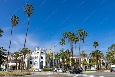 Traditional colonial architecture in Santa Barbara, California. USA. Popular tourist destination.