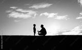 Father son relationship concept. Father having a talk with his son child spending time together.