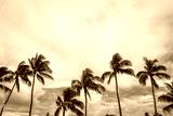 Beautiful tropical sunset. Silhouettes of palm trees background
