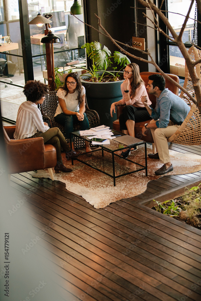 Networking through the night. Shot of a young businesswoman working late at night in a modern office superimposed over a cityscape.