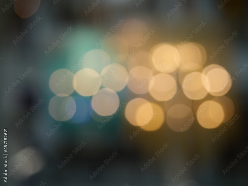 Bokeh from indoor lighting, Colorful light circles spread on blue with yellow and green background for the celebration of the holiday season