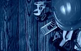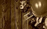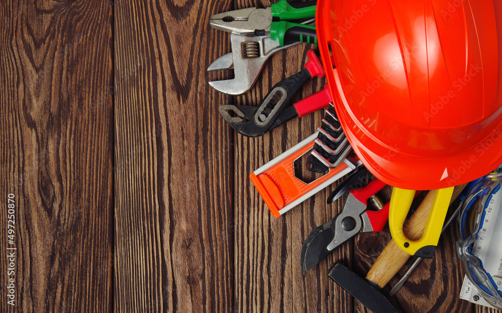 Tools on wood background