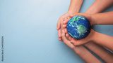 Group of Hands holding earth globe on blue background, International human solidarity day concept, world health day, safe world concept with copy space, Elements of this image furnished by NASA