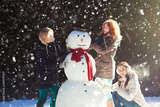 Three girls building a snowman