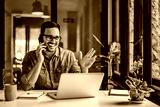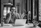 Merry office worker, receiving a surprising phone call.