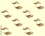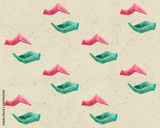 Modern art collage in pop-art style. Contemporary minimalistic artwork in neon bold colors with hands gesturing on pastel background. Psychedelic design pattern.