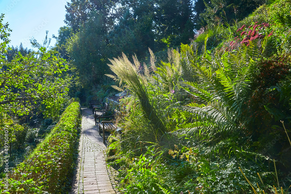 Blick in den Klostergarten von Kaufbeuren in Bayern, Süddeutschland.