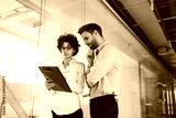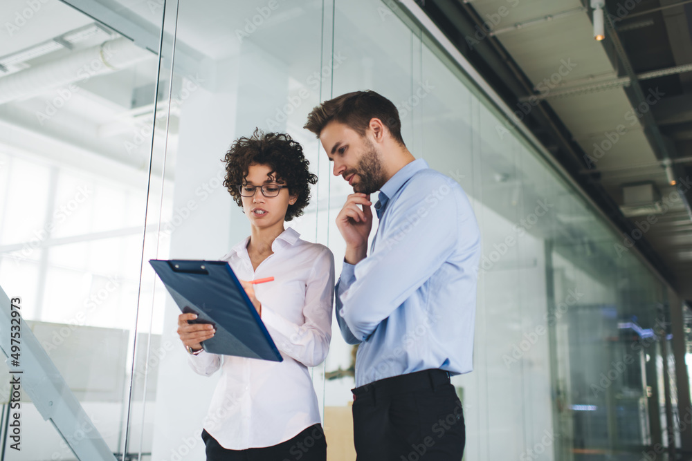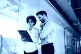Millenial business man and woman working in office