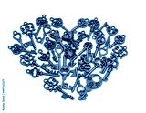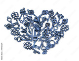 a heart shape made of blue ornamental keys for clocks and treasure boxes with unique shapes and design